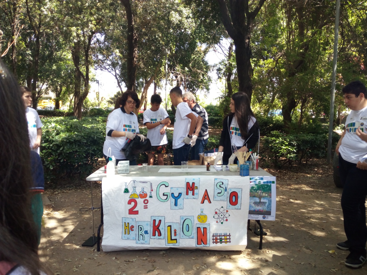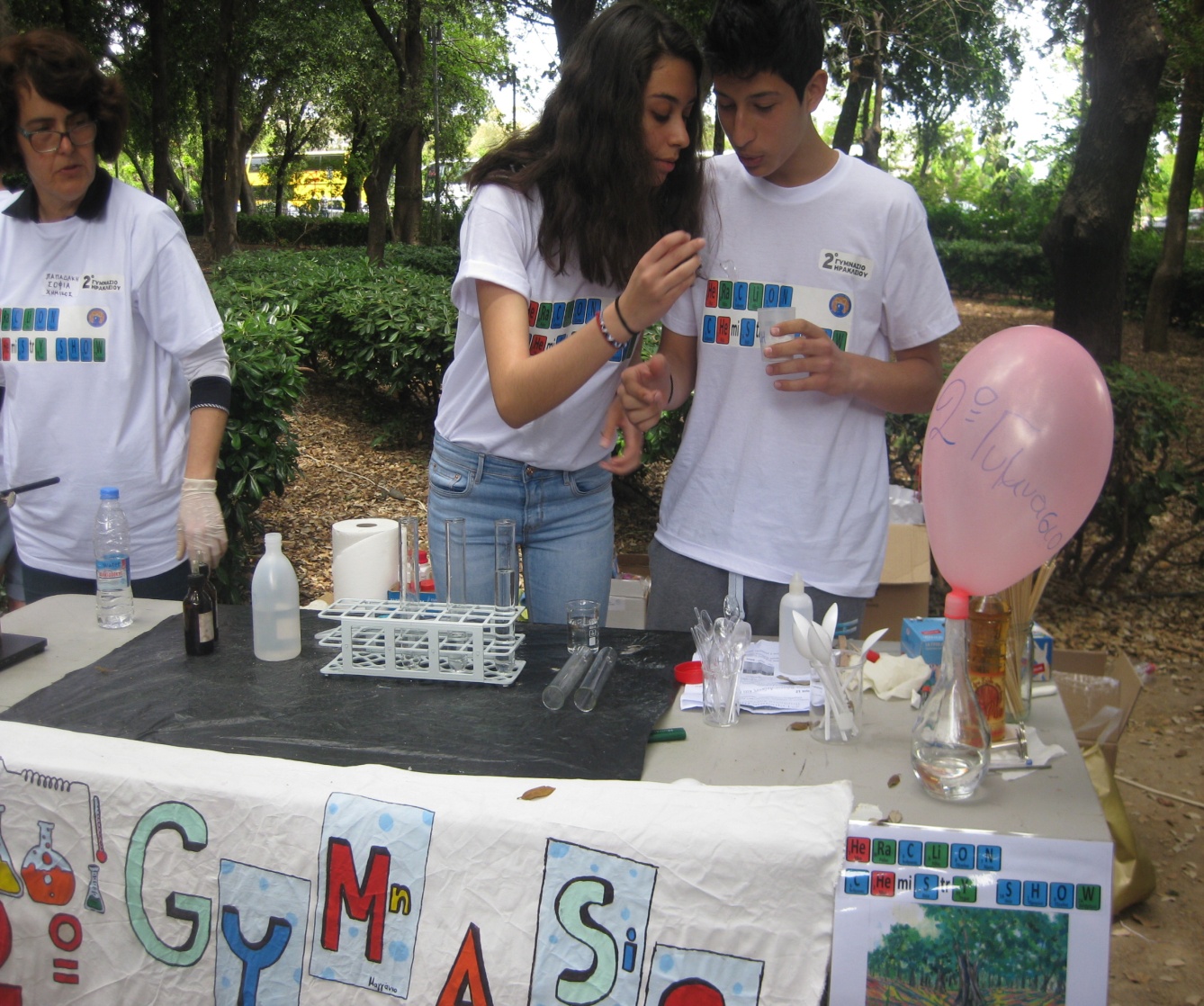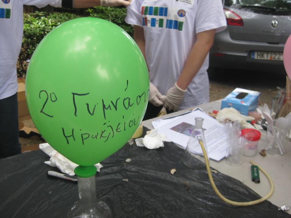 Είκοσι τρεις μαθητές του 2ου Γυμνασίου Ηρακλείου μαζί με τους καθηγητές του έβγαλαν τη Χημεία μέσα από τους τέσσερεις τοίχους του σχολικού εργαστήριου και παρουσίασαν στο πάρκο Γεωργιάδη είκοσι πειράματα στο κοινό της πόλης μας.
