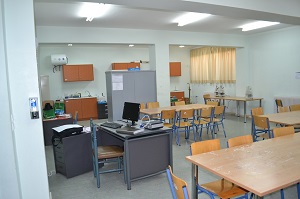 Στο υπόγειο του σχολείου λειτουργεί εξοπλισμένο εργαστήριο Τεχνολογίας για τις ανάγκες του αντίστοιχου μαθήματος.