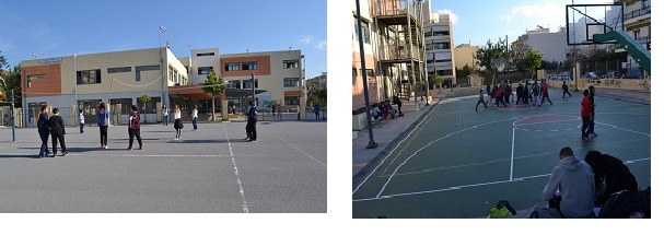 Στον αύλειο χώρο του σχολείου υπάρχουν 3 γήπεδα βόλεϊ και ένα γήπεδο μπάσκετ με κατάλληλο τάπητα για τις αθλητικές εκδηλώσεις του σχολείου αλλά και για τις ανάγκες του αντίστοιχου μαθήματος.